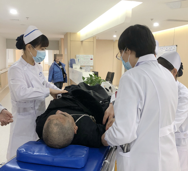 医护人员一边紧急抢救,一边联系救护车。救护车赶到现场,男子被送往陕西冶金医院救治。运送途中,该男子能简单的告知自己是哪里的人,说自己52岁,有高血压病。到院后,医院本着先救人的原则,在该男子未交一分钱的情况下,为其开通绿色通道,紧急安排了头颅CT、心电图等检查及相关治疗。目前,该男子已入院治疗,生命体征平稳。
