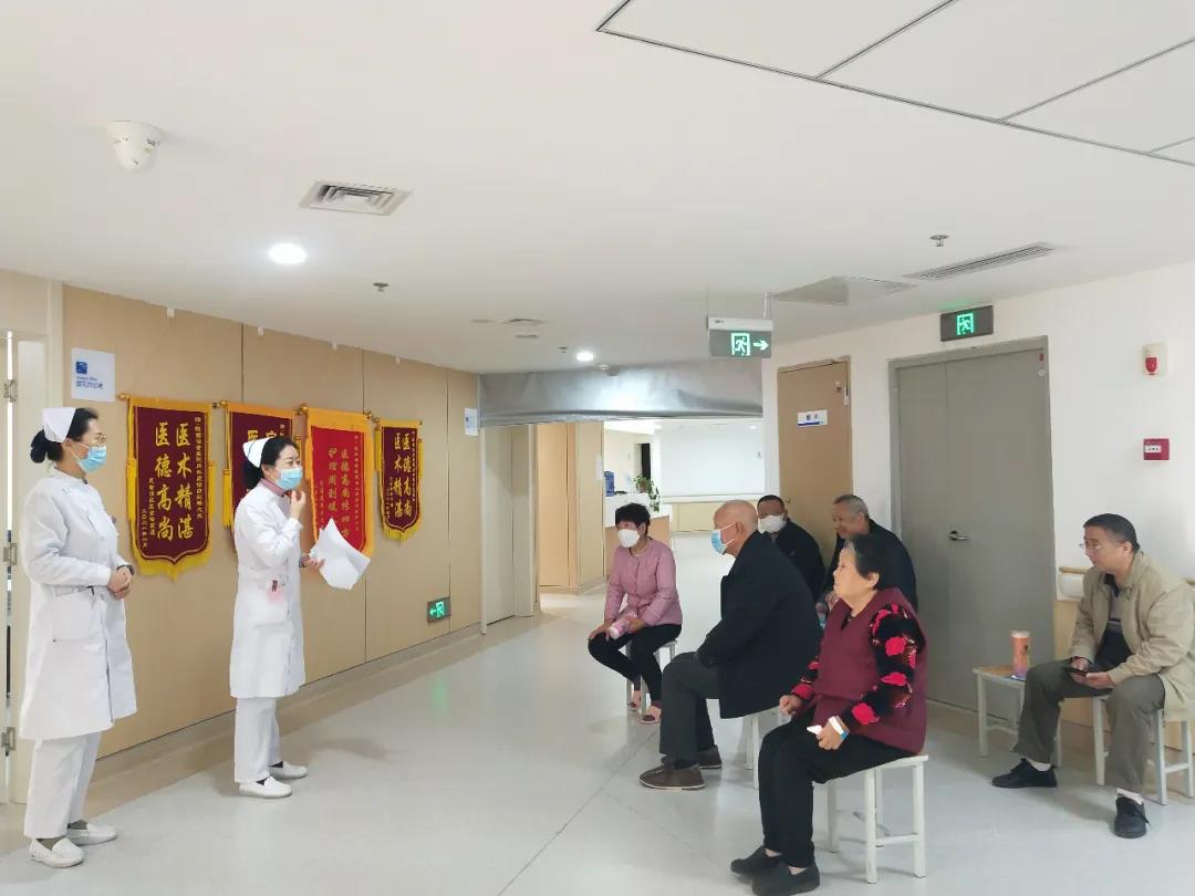 “众所周知,近期西安疫情反弹,为保证治疗效果的同时保护在院人员自身安全,医院要求各位患者及陪人住院期间不得外出,谢绝探视,非必要不留陪人。我们入院时已经正常采集了核酸,非必要的情况可以不在免费检测点重复采集。提醒大家:1.在院期间尽量不出病房,出病房时戴口罩;2、出病区时必须跟值班护士打招呼,请假外出时必须完善请假流程,外出必须戴口罩。另外,冬季冷空气刺激血管收缩,容易造成血压过高和心脑血管意外。想要高效预防心脑血管疾病的发生,要注意防寒保暖、坚持体育锻炼、定期检查、谨遵医嘱、控制情绪、清淡饮食。”郗斌护士长说。