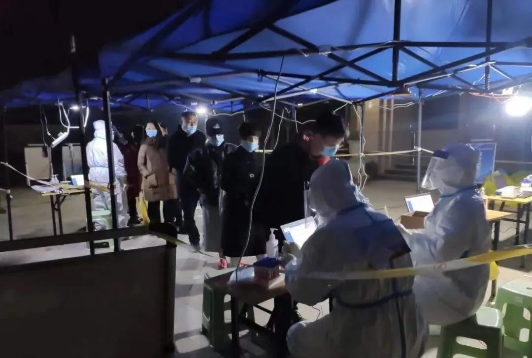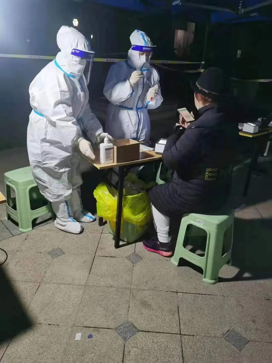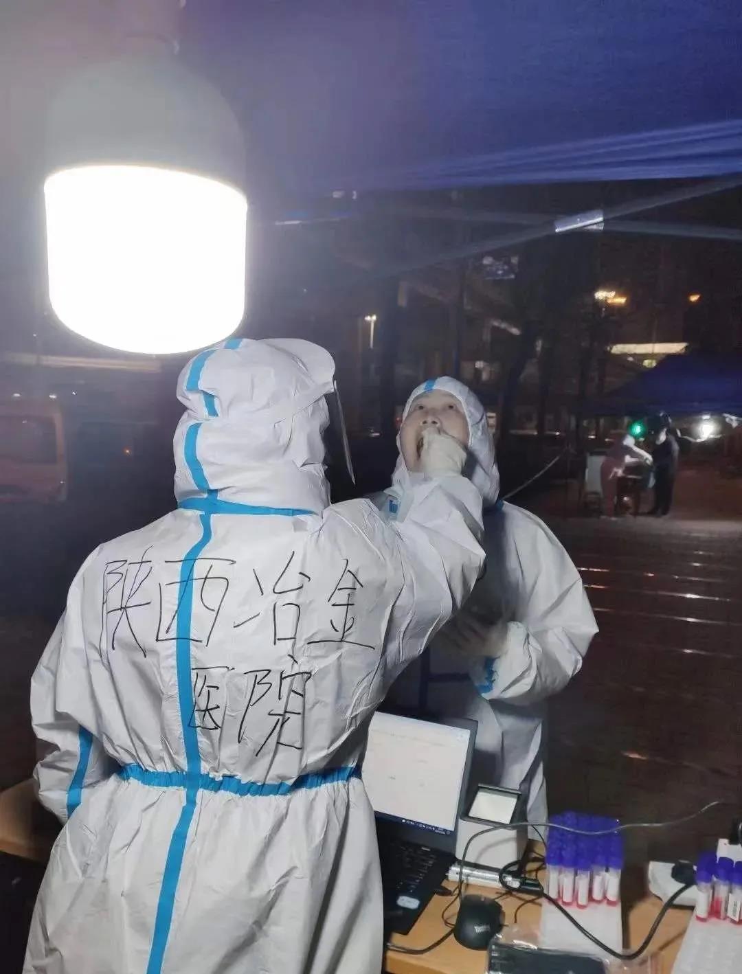 陕西冶金医院“大白”们,不眠不休,通宵奋战在核酸采样一线。他们分批先后前往田家湾、司法小区、建工路东西路口、铁道技师学院、砖厂办公楼、凯森盛世等地连夜开展全员核酸采样工作。