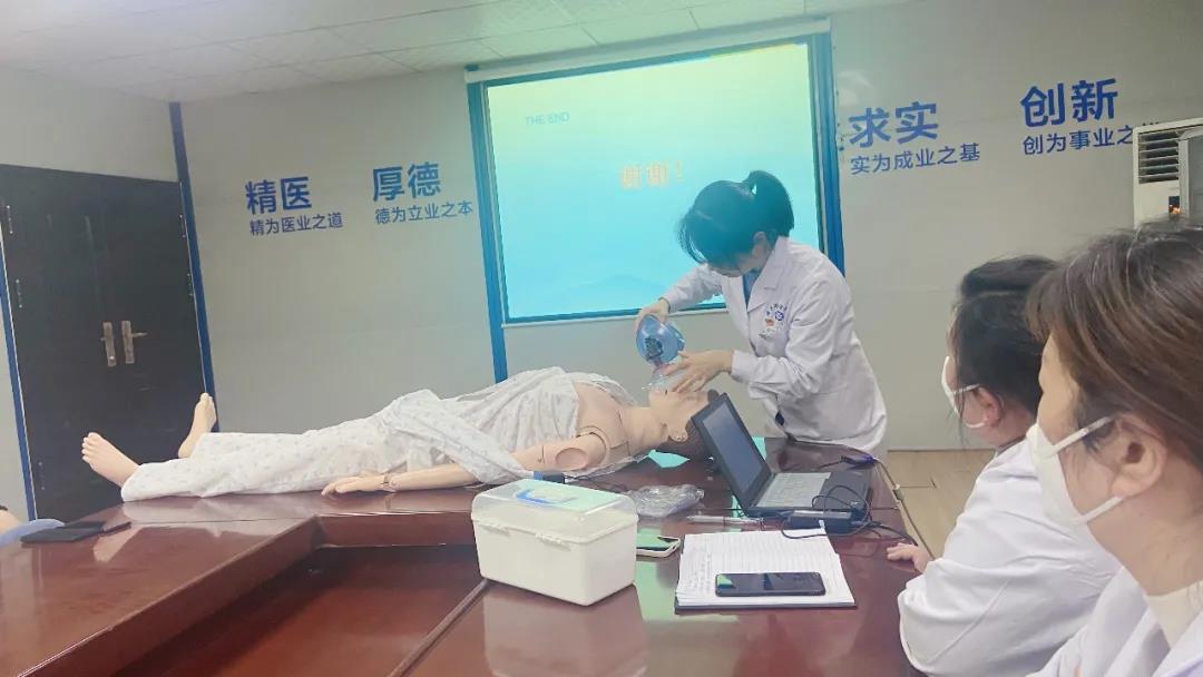 在随后的急救知识培训中,陕西冶金医院急诊科洪万虹主任、脊柱侧弯矫形科李娟娟护士长以通俗易懂的语言,从评估呼救、判断劲动脉搏动、胸外按压、开放气道、人工呼吸、简易呼吸气囊的使用方法等方面进行讲解,并以互动方式和大家进行练习操作。通过此次培训让全员熟练掌握了心肺复苏的急救技术与理论,为危重症的识别和救治工作打下坚实基础。