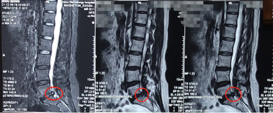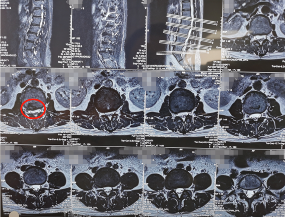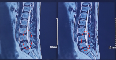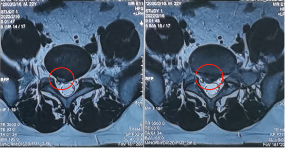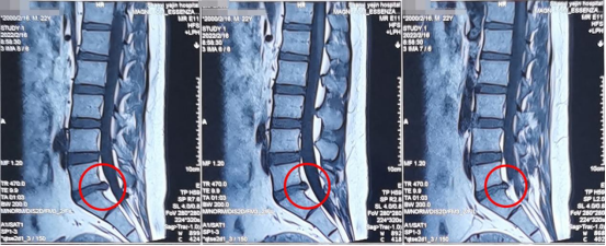 陕西冶金医院神经脊柱科的张少华主任、熊东主任接诊后,为小孙进行了详细的查体,并结合各项检查结果和影像学片子,发现他在腰5/骶1节段出现了比较严重的腰椎间盘突出,并造成较为严重的神经受压。