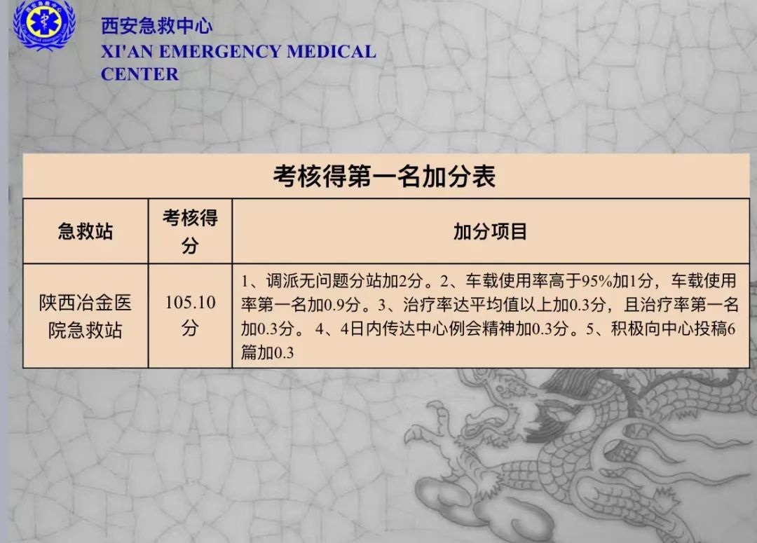 【又传喜讯】全市第一!陕西冶金医院急救站在质量考核考评中获全市第一名