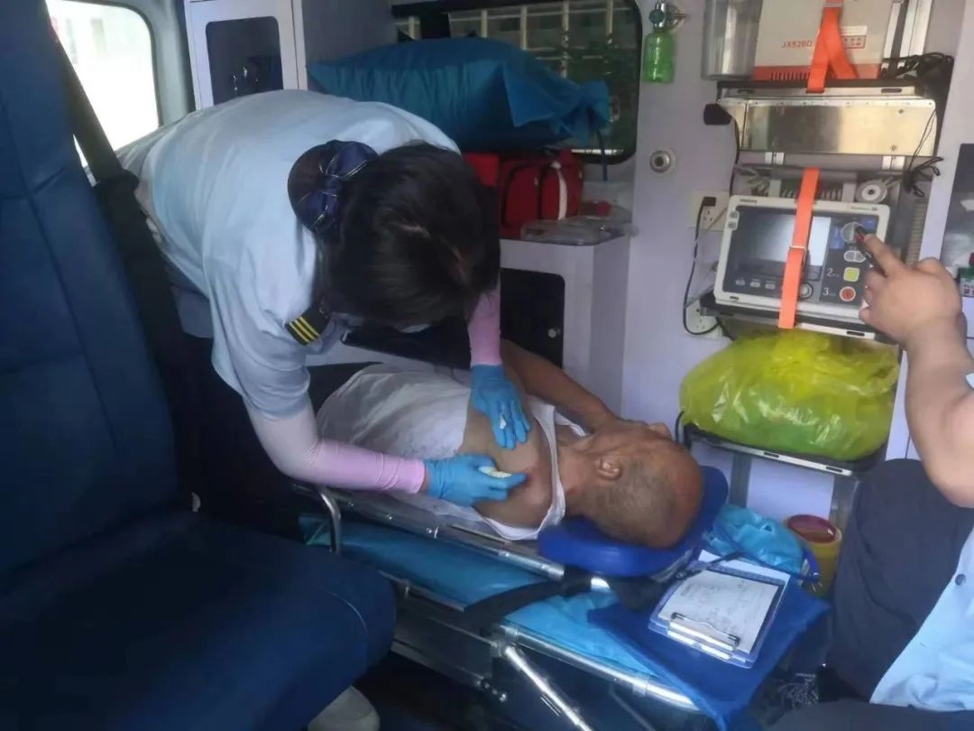 2023年7月18日12时24分40秒,接到急救中心调度指令,患者30分钟前无明显诱因意识丧失,晕倒在路边,接到任务指令120,陕西冶金医院急救站医护人员立即放下手中的碗筷,前往事发地点。路上张俊峰医生联系拨打120的路人,细心询问患者病情,指导路人先接患者转移到安全地方,我们即刻到达。12时30分医护人员到达现场,患者是一名89岁男性老人,意识逐渐恢复,精神差,患者头部可见3cm×3cm血肿,左肩部及左手臂两处擦伤伴出血,晏玉风护士即给患者测量生命体征,快速给予擦伤部位消毒止血等对症处理,医生即询问患者病情,检查受伤情况,患者似有老年痴呆,答非所问,联系不到家属,身上也未带证明自己身份的证件。