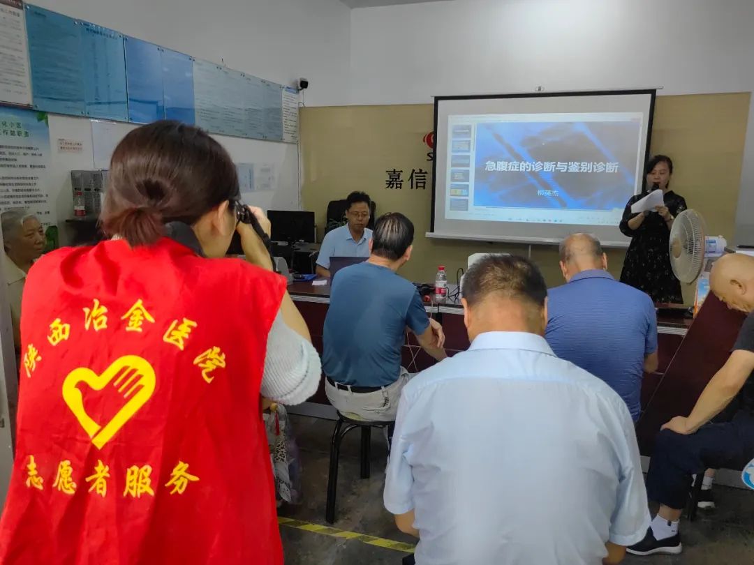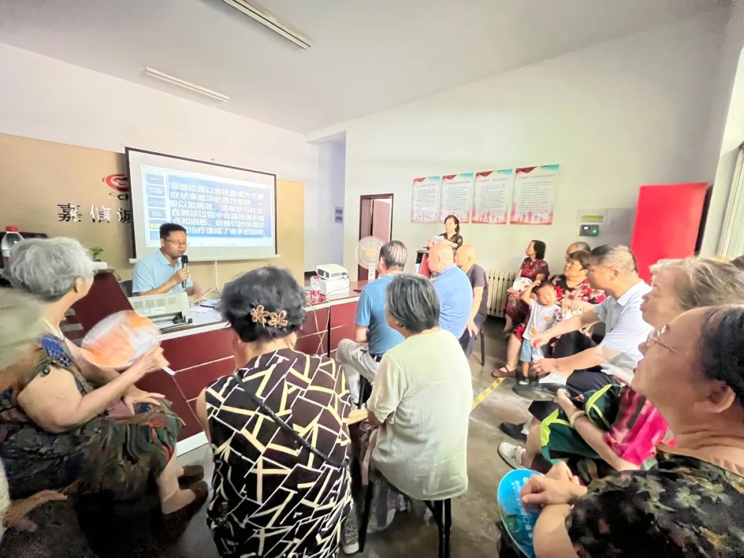 上午8点30分,活动在《日常急腹症如何应对》的公益讲座中拉开序幕。陕西冶金医院综合外科主任柳英杰用通俗易懂的语言,结合实际案例,分别从急腹症的概念、治疗、预防三个方面为大家进行详细分析讲解。讲座上,居民们纷纷拿出手机拍照记录或用纸笔记下重点,柳英杰主任“接地气”的讲座让居民们收获良多,获得大家的高度认可。