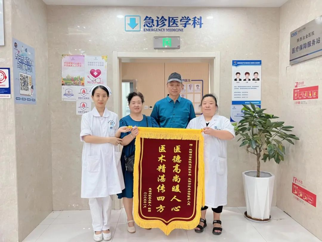 患者刘先生,39岁,诊断:药物过敏性休克,于2023年8月11日09:15意识丧失30分钟,由陕西冶金医院救护车送入抢救室,在急诊医学科主任万虹的主持下,立即启动“绿色通道”,展开积极抢救。经过急诊医学科医护团队第一时间积极救治,为患者争取了最佳救治的时间,现患者已完全康复,家属对急诊医学科医护救治水平给予很大的肯定,特送锦旗以此表达对陕西冶金医院急诊医学科医护人员的无限感激之情。