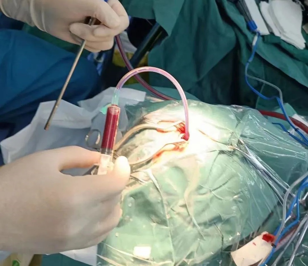 手术顺利,患者得到了及时有效的救治,术后安返ICU。患者镇静状态,术后给予气管切开,右侧锁骨下CVC置管,硬膜下引流管、脑室引流管,腰大池置管穿刺引流,ICP颅内置入持续监测颅内压,目前持续冰毯冰帽降温+冬眠疗法,脑疝解除,颅内压14cmH2O,病情平稳。