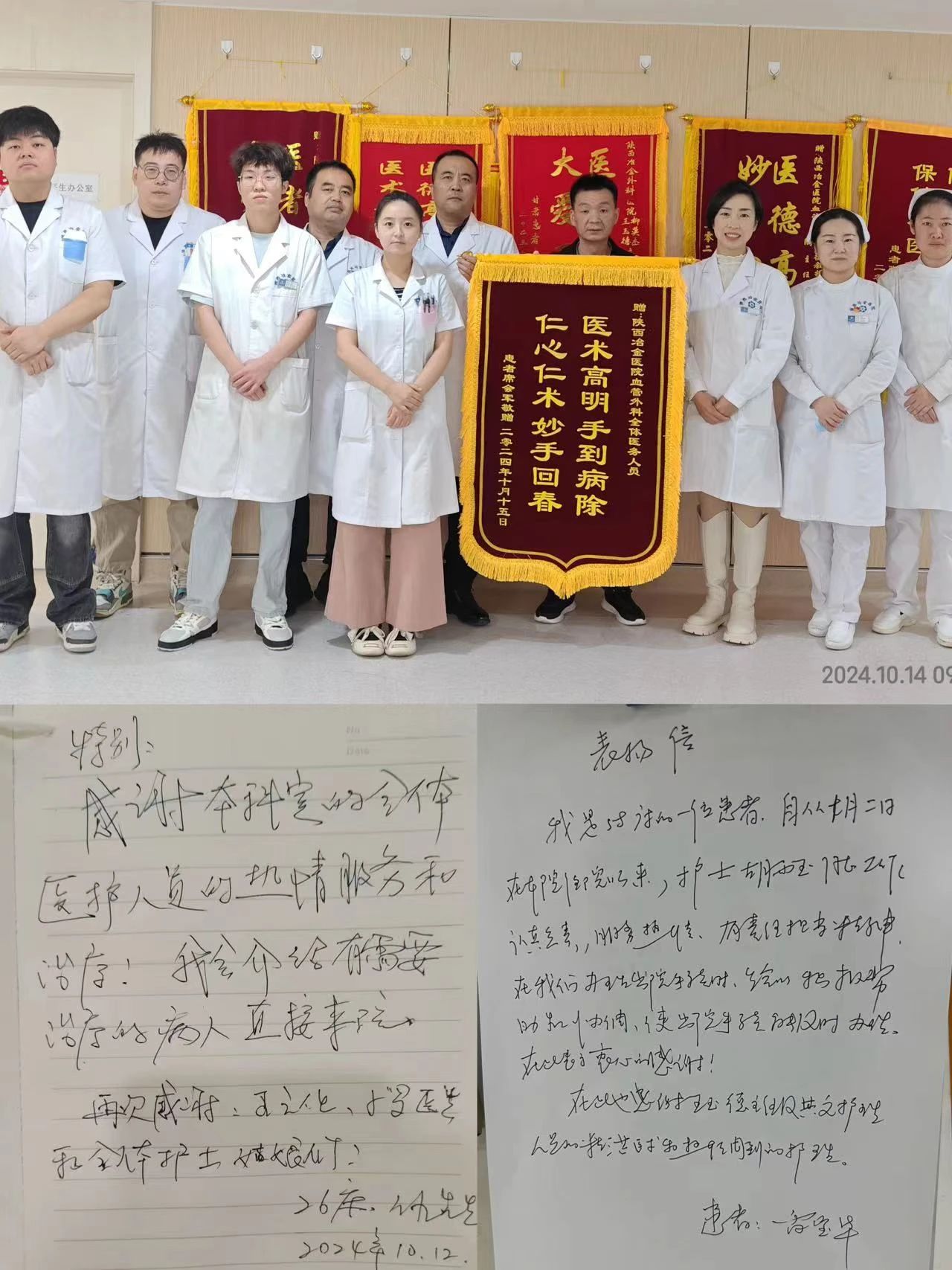 经过精心治疗,席先生成功治愈出院。复查当天,席先生送来两封感人至深的手写感谢信和锦旗。纸短情长,锦旗鲜红,不仅是对科室医护人员的高度赞誉,更是医患之间真情涌动的见证。