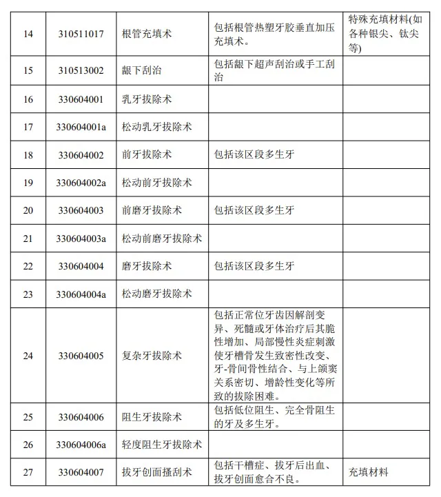 7.牙拔除术:各类残冠残根拔除术、阻生牙拔除术、松动牙拔除术、乳牙拔除术;