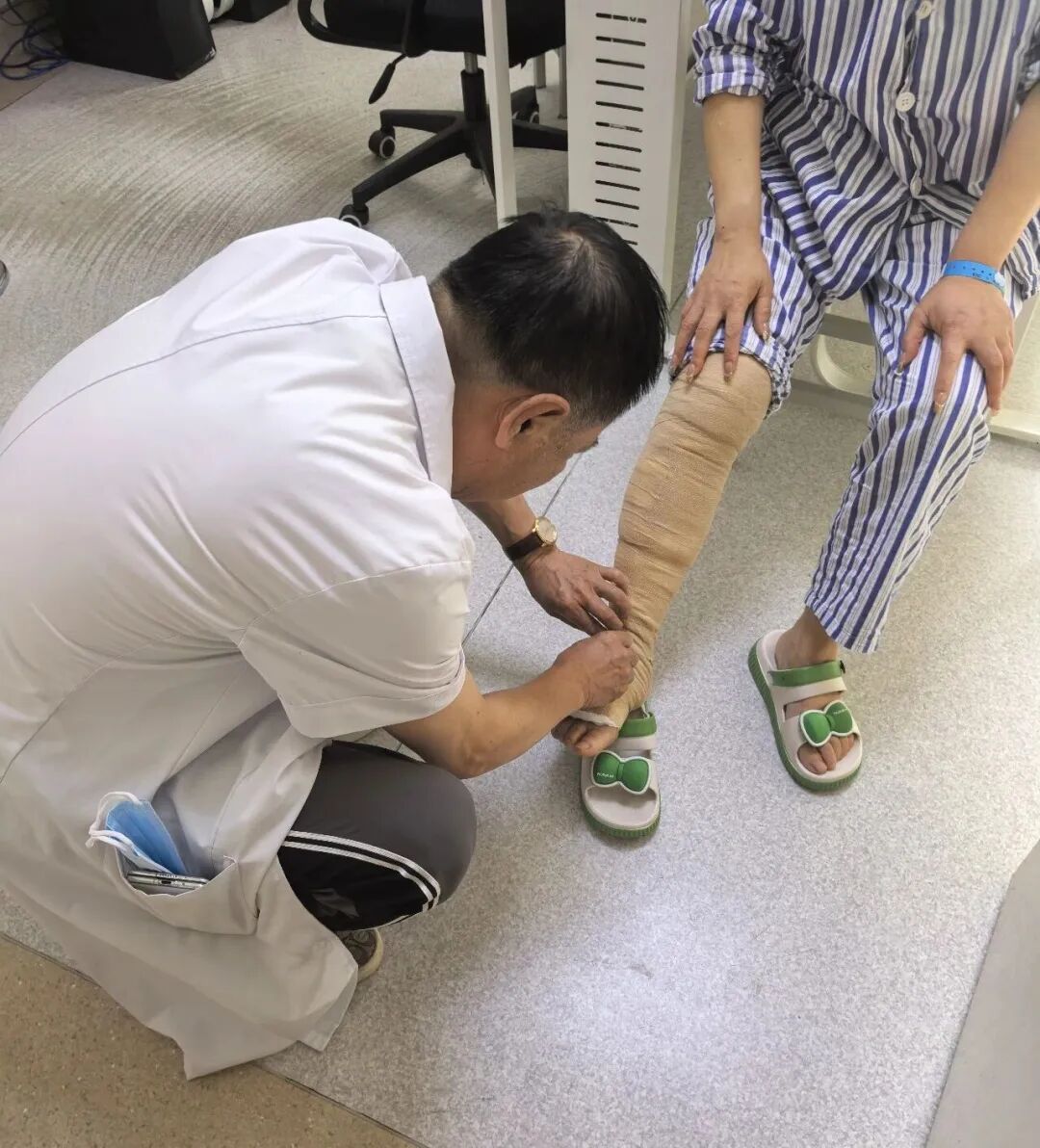 针对费女士病情,血管外科王玉德主任与党金鑫医生团队制定综合诊疗方案,通过微创综合治疗改善静脉回流,配合溃疡修复术处理创面,并辅以术后物理治疗促进愈合。